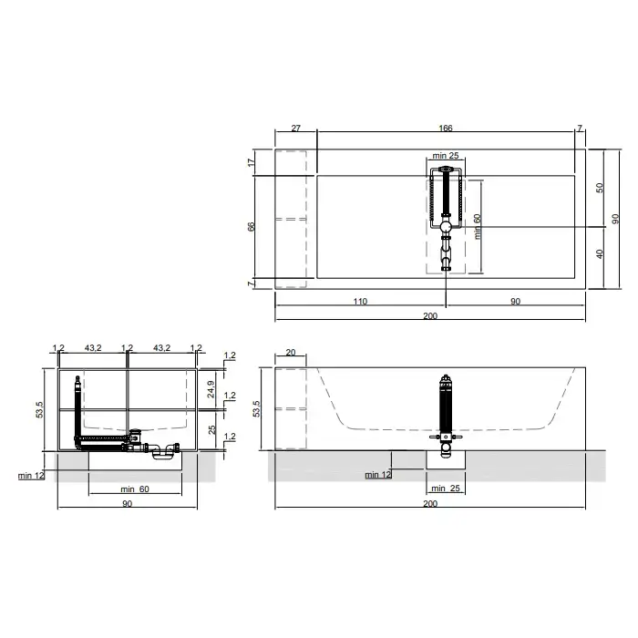 Antonio Lupi Biblio Ванна прямоугольная пристенная, (2стороны) 200х90х53.5см, цвет: белый