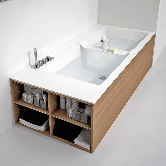 ANTONIO LUPI BIBLIO Ванна прямоугольная (4 стороны) 1900х800х535 мм., с нажимным донным клапаном, Corian, ванна белая, отделка Rovere naturale