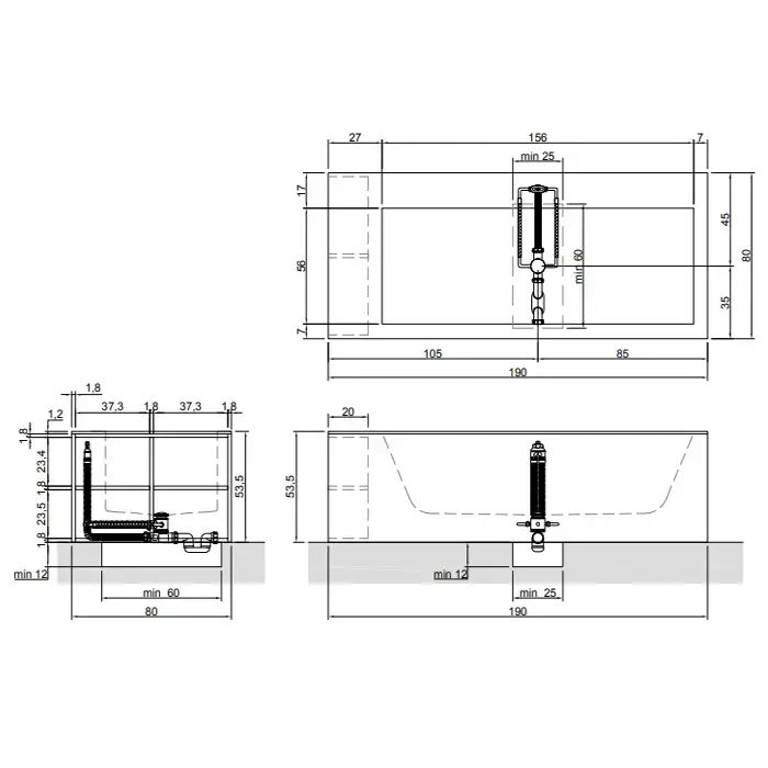 Antonio Lupi Biblio Ванна прямоугольная пристенная, (4 стороны) 190х80х53.5см, цвет: белый