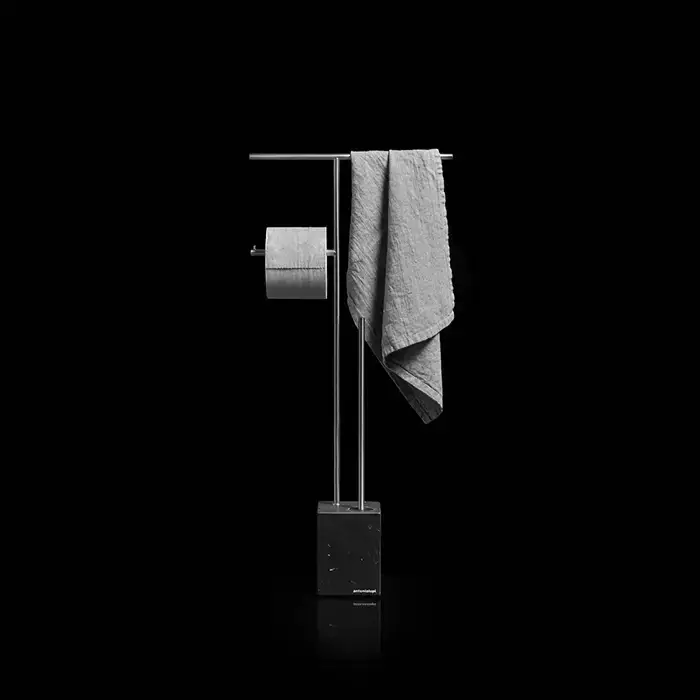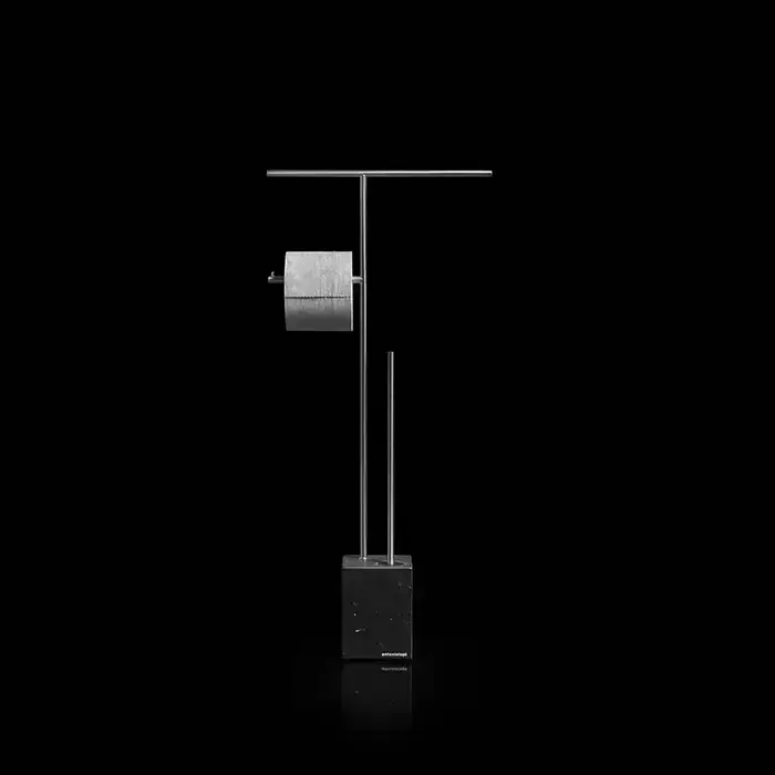 Antonio Lupi Biviocombi Стойка напольная с держателем туалетной бумаги, полотенцедержателем и ершиком, база из мрамора Nero Marquinia satinato, цвет: Nero goffrato