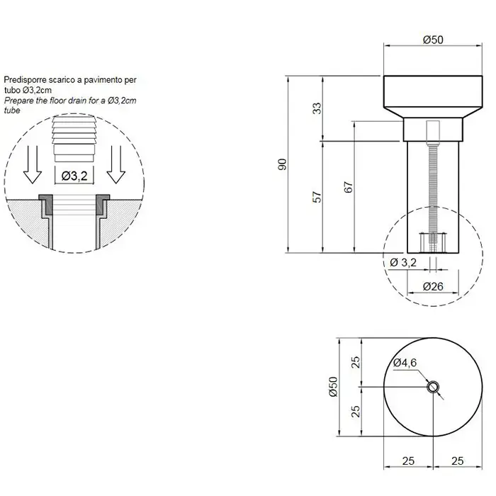 ANTONIO LUPI Borghi Пьедестал для раковины, слив в пол, с сифоном и гибким шлангом, пробка Toasted