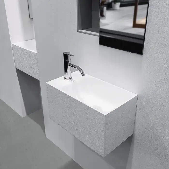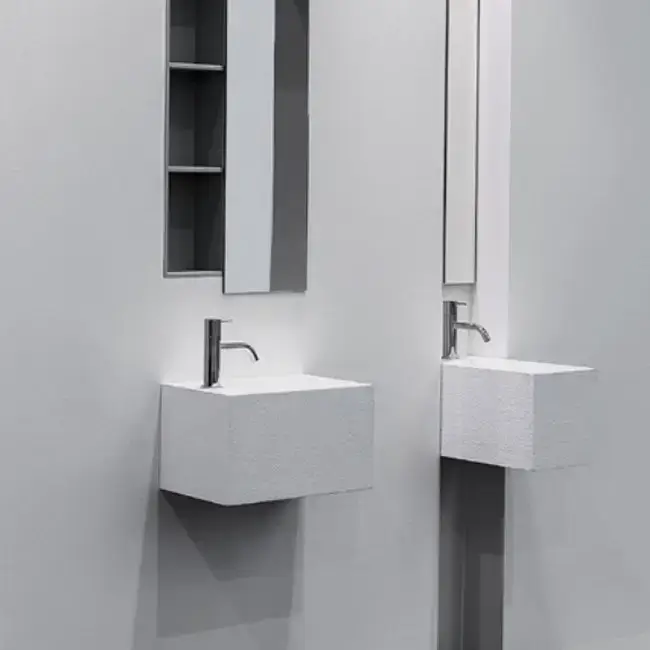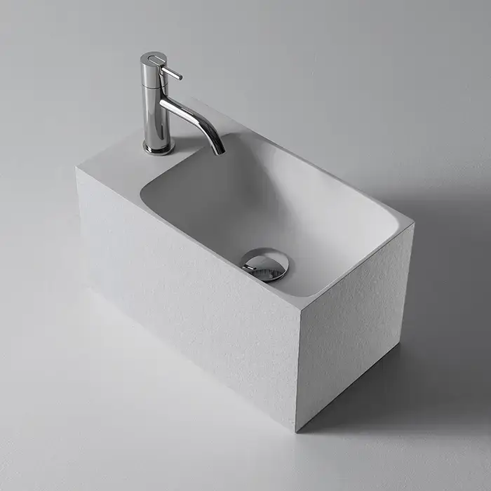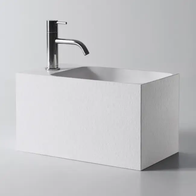 ANTONIO LUPI CALCO Раковина подвесная 450х250х250 мм., с 1 отверстием для смесит, с самотечным донным клапаном, Flumood в отделке texture, цвет белый