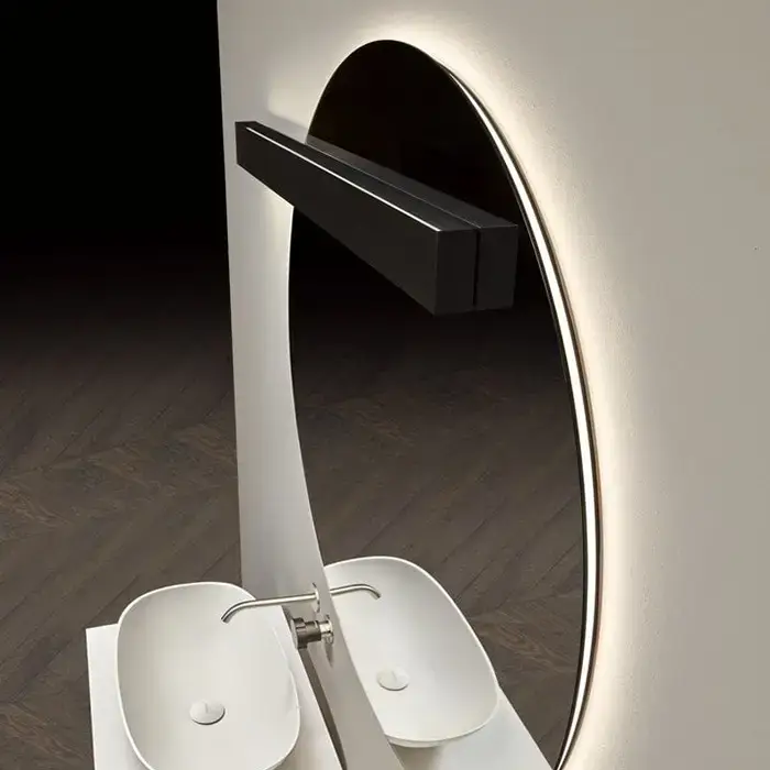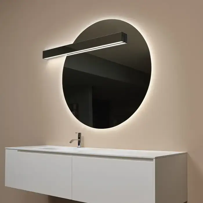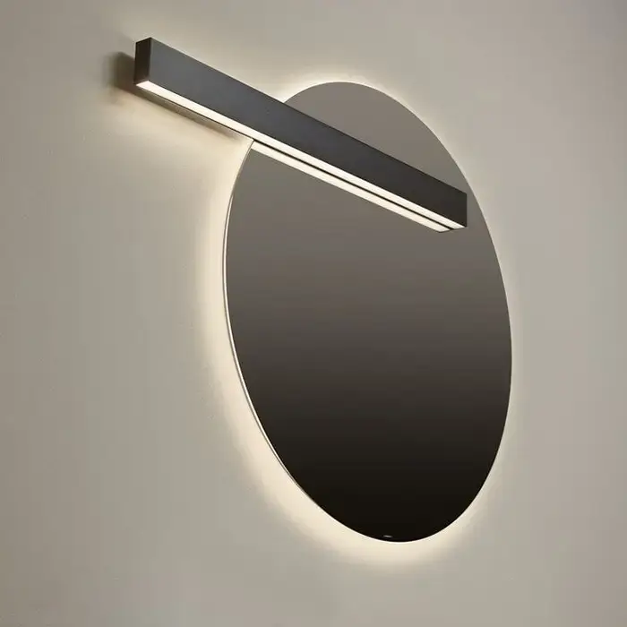 Antonio Lupi Circus Зеркало Ø108cм., с белой светодиодной подсветкой, с блестящей кромкой, с левосторонним светильником LUCENTE, на раме