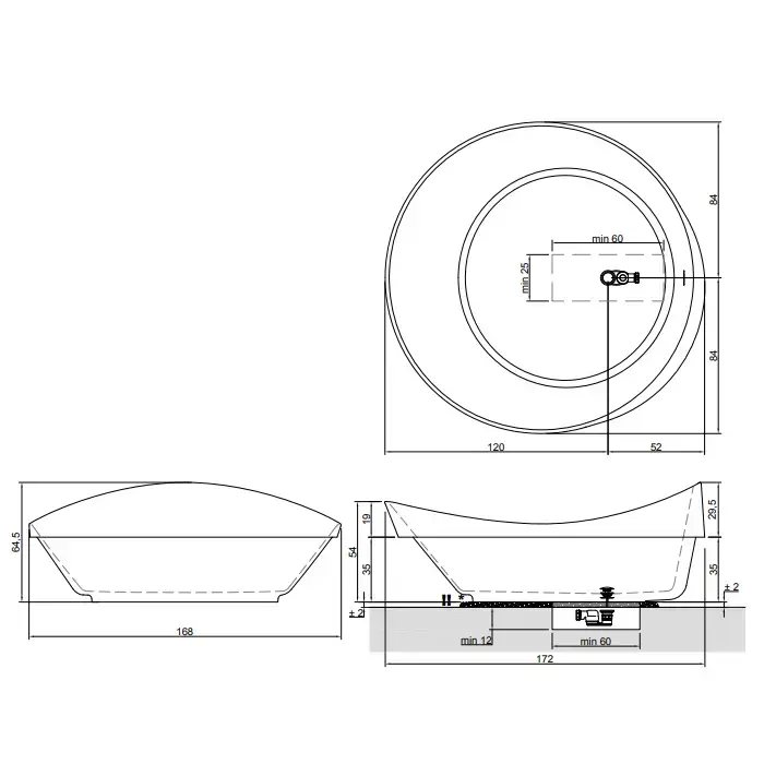 Antonio Lupi Dune Ванна полувстраиваемая 172х168х64.5см, цвет: белый