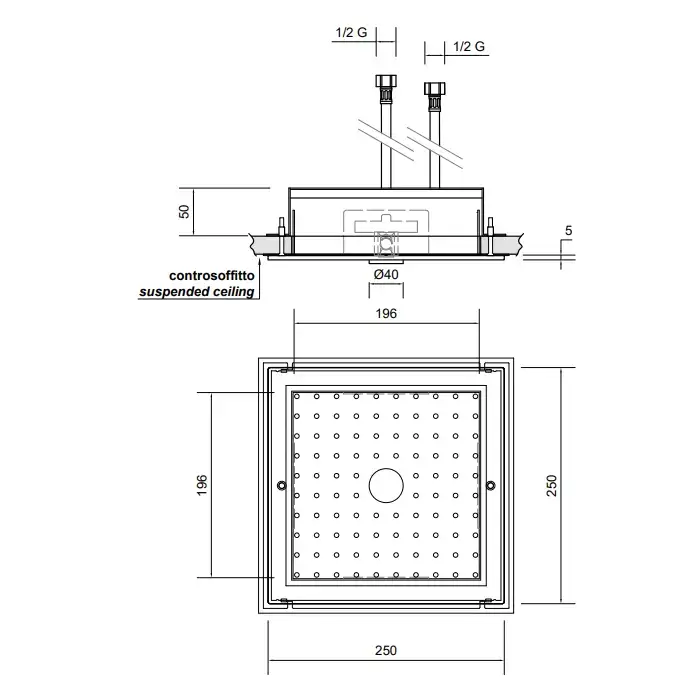 ANTONIO LUPI LAMATTONELLA Верхний душ 250х250х5 мм., встраиваемый в потолок, со сплошной струей, полированная нержавеющая сталь
