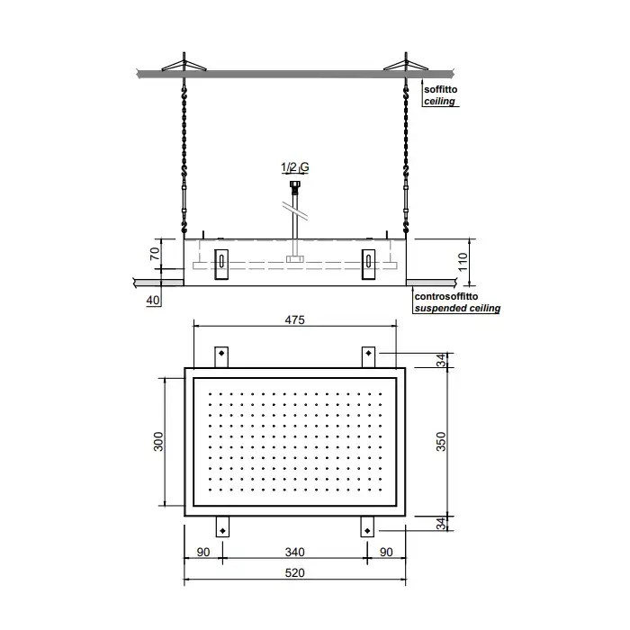 ANTONIO LUPI METEO Верхний душ 520x350x110 мм., встраиваемый в потолок, с подсветкой, пультом и трансформатором, рама белая, лейка белая