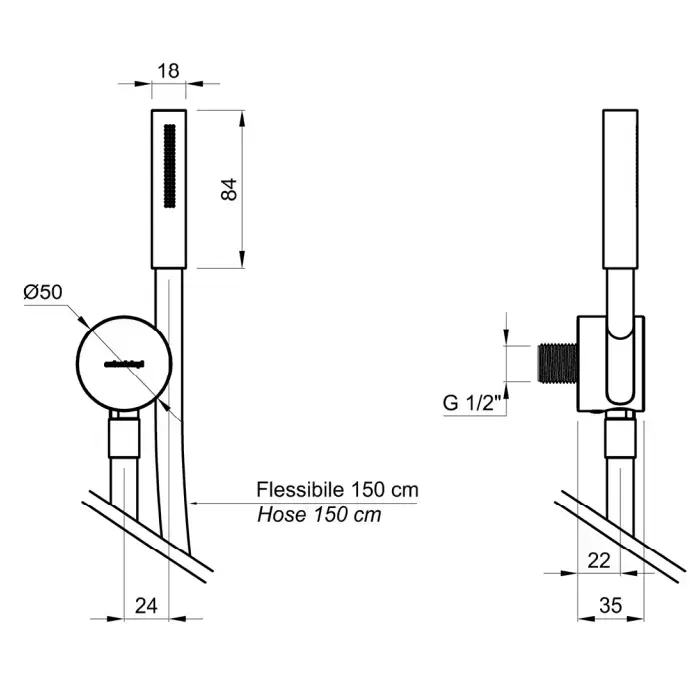 Antonio Lupi Filo Ручной душ, с шланговым соединителем, держателем и шлангом, цвет: нержавейка полированная