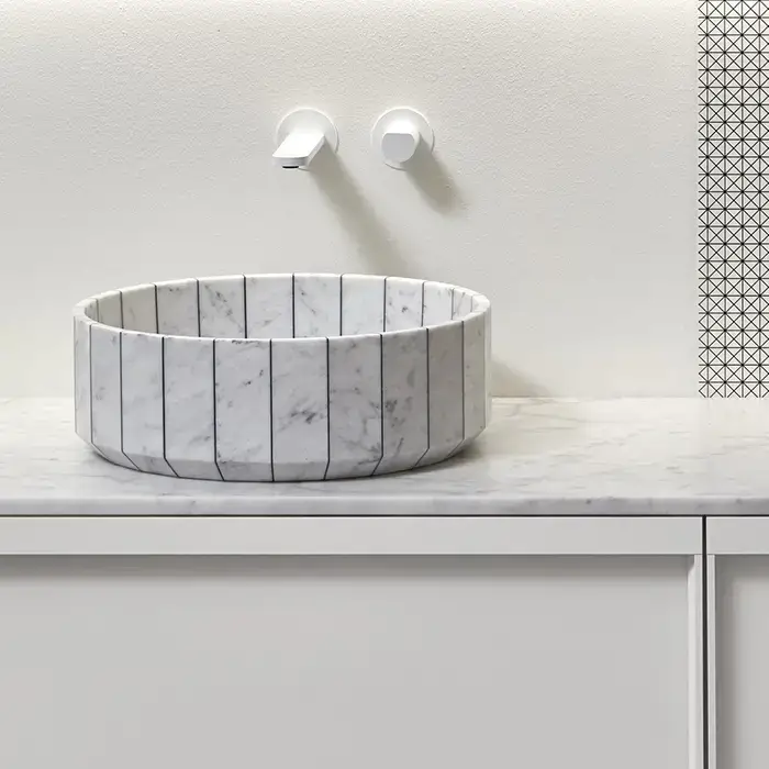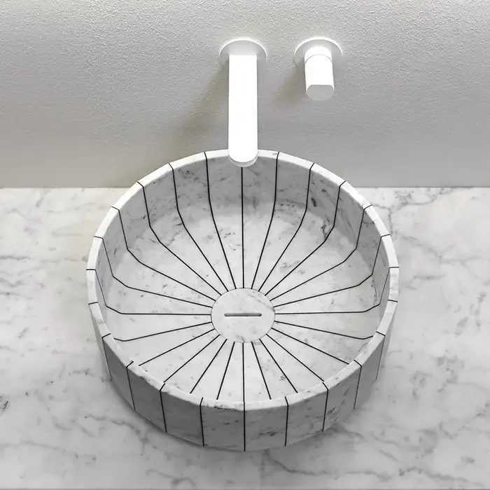 ANTONIO LUPI FONTE Раковина Ø450х150 мм., для установки на столешницу, в комплекте с донным клапаном, мрамор Carrara