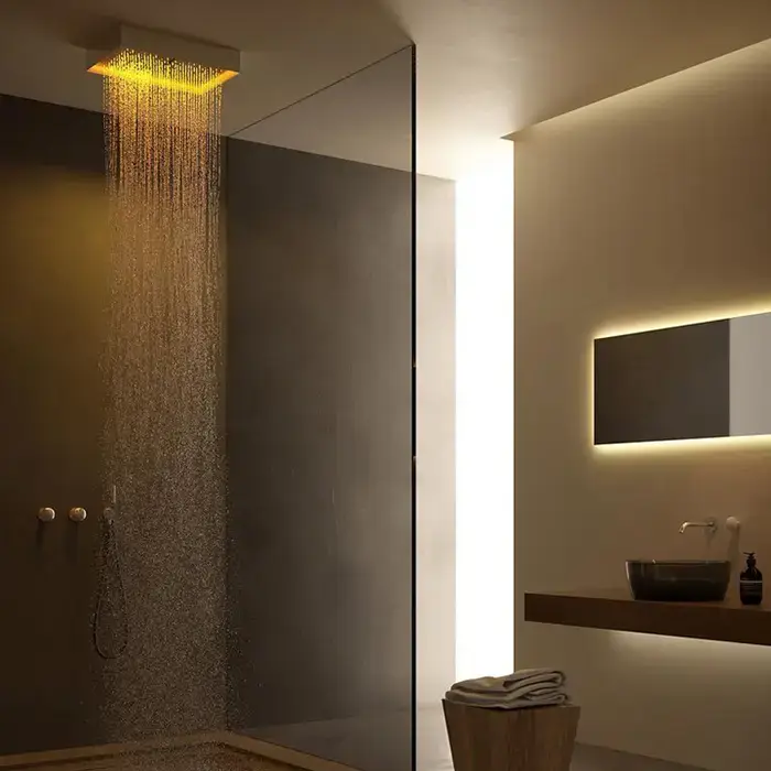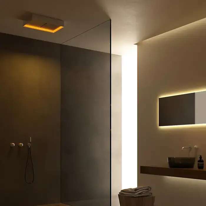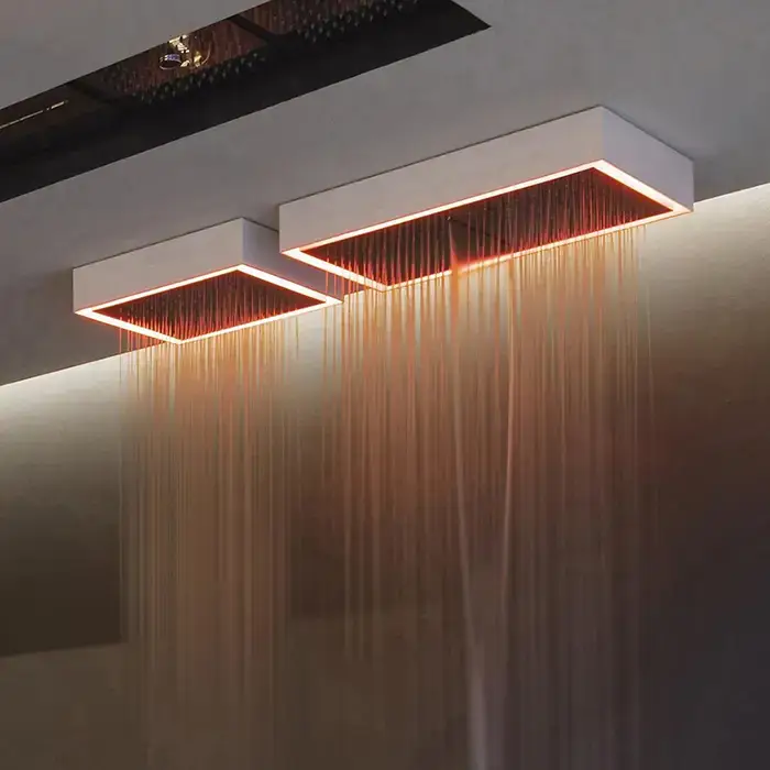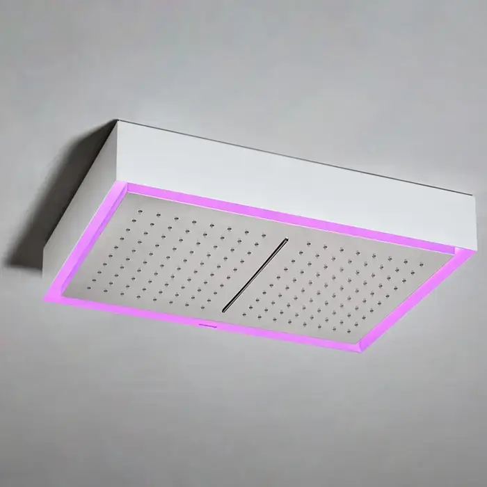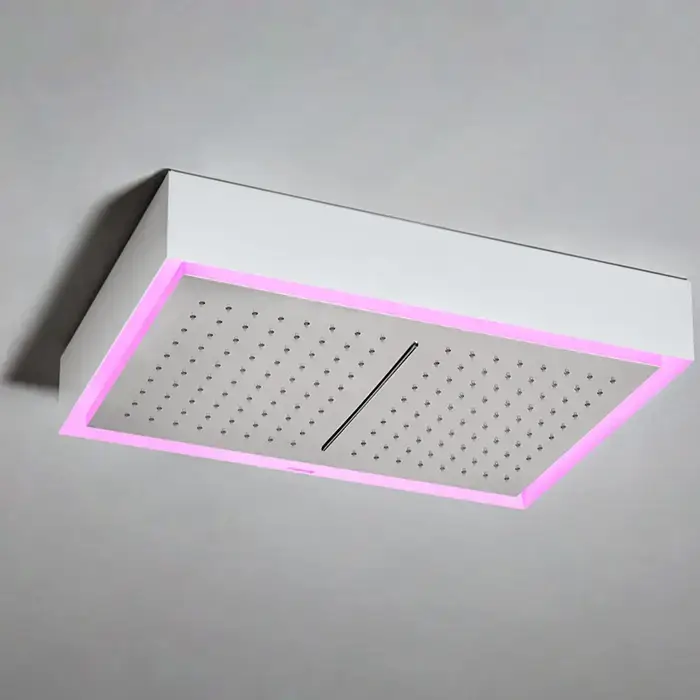 ANTONIO LUPI FUORIMETEO SLIM Верхний душ 520х350х90 мм, потолочный монтаж, с каскадом, с подсветкой, пультом и трансформ, рама белая, лейка зерк сталь