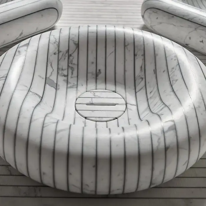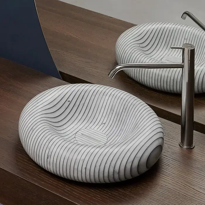 Antonio Lupi Gessati Раковина накладная, круглая, Ø45см, без отв под смес, без перелива, с д/клапаном (хром), мат-л: нат.камень, цвет: Marmo Carrara