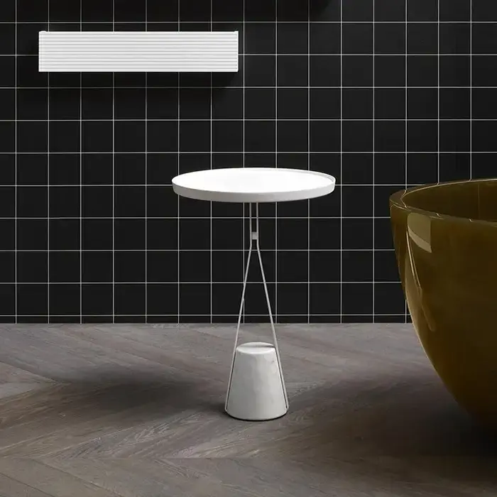 Столик для ванной комнаты Antonio Lupi Halo HALO1A Embossed lacquered frame nero/Carrara satinato marble//White /brass