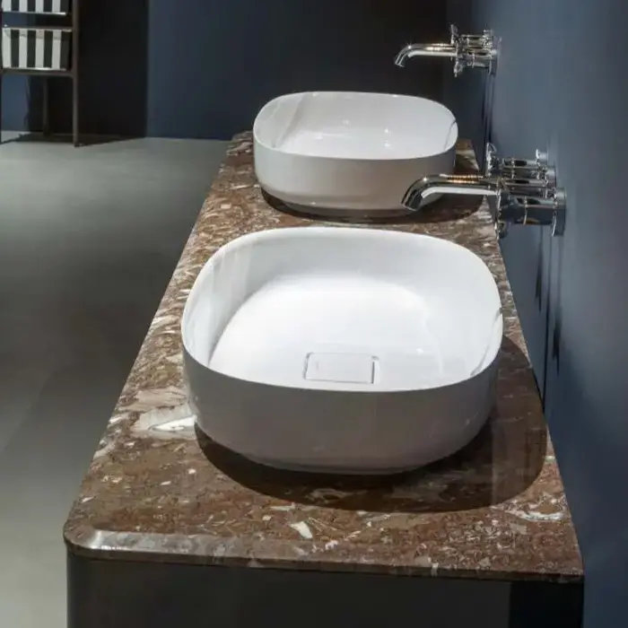 ANTONIO LUPI TEMPO Столешница мраморная 1980x540х20 мм., с 2 отверстиями для раковин, мрамор Petra ruja