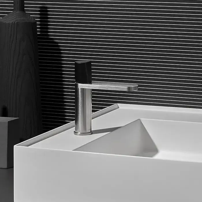 ANTONIO LUPI INDIGO Смеситель для раковины на 1 отверстие, излив 165 мм., ручкая черная матовая, цвет: сатинированная сталь