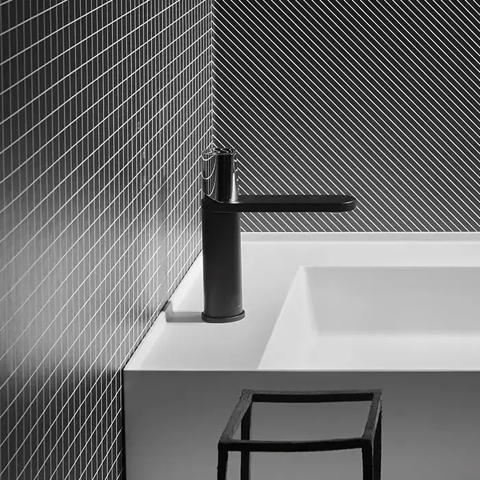 ANTONIO LUPI INDIGO Смеситель для раковины на 1 отверстие, излив 165 мм., ручка хром блестящий, цвет: черный матовый