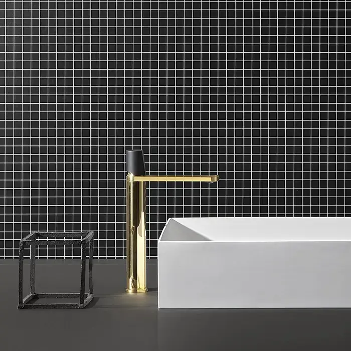 ANTONIO LUPI INDIGO Смеситель для раковины на 1 отверстие, однорычажный, высота 285 мм., ручка черная матовая, отделка полированная натуральная латунь