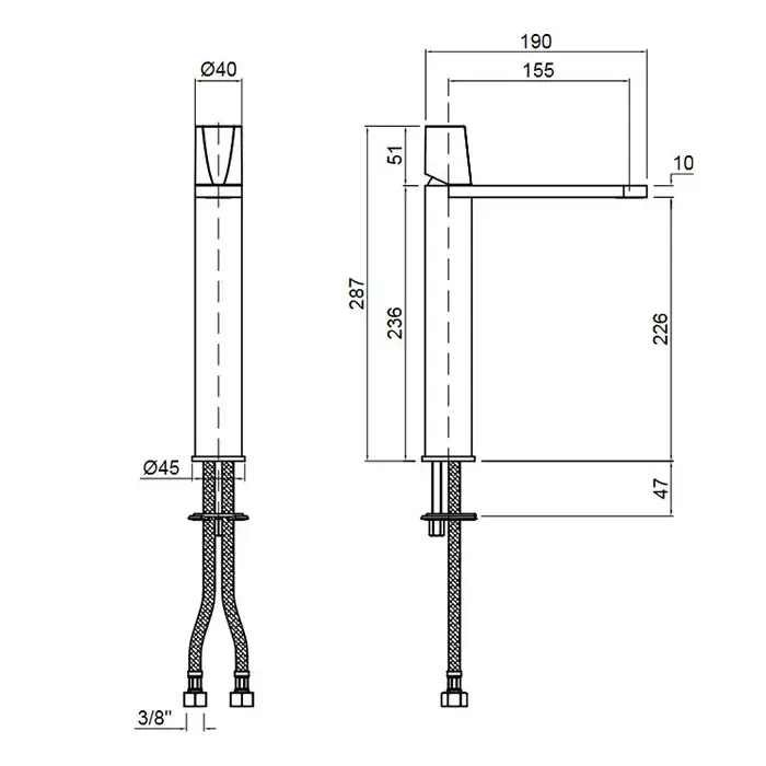 ANTONIO LUPI INDIGO Смеситель для раковины на 1 отверстие, излив 165 мм., ручкая черная матовая, цвет: сатинированная сталь
