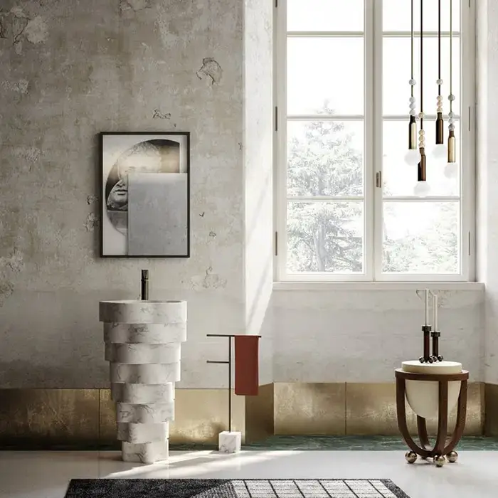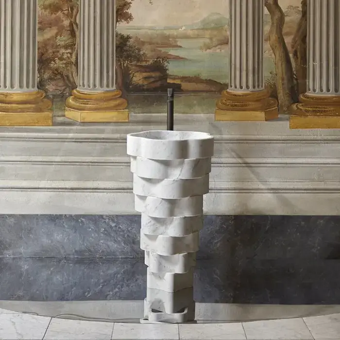ANTONIO LUPI INTRECCIO Раковина напольная Ø475x850 мм., слив в пол, с самотёчным донным клапаном, сифоном, гибким шлангом, Marmo Carrara