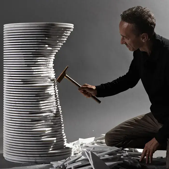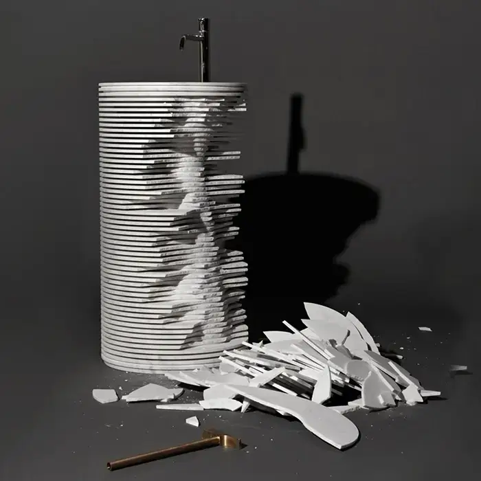 ANTONIO LUPI INTROVERSO Раковина напольная Ø450х850 мм., слив в пол, с самотёчным донным клапаном, сифоном и гибким шлангом, Marmo Carrara