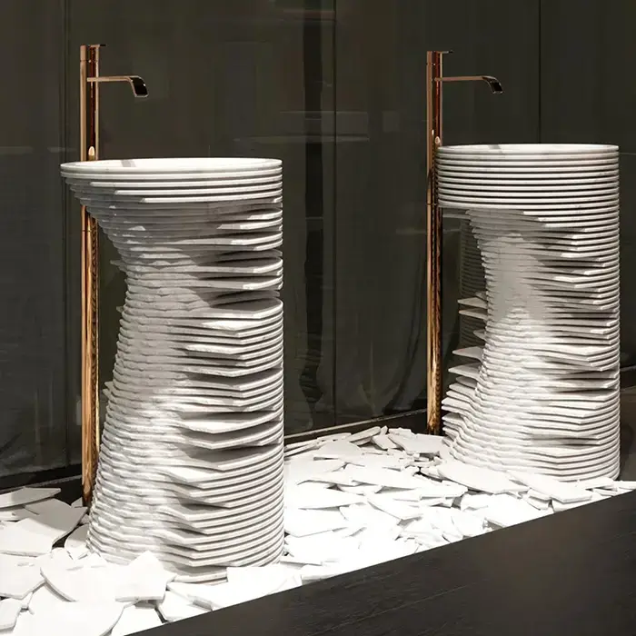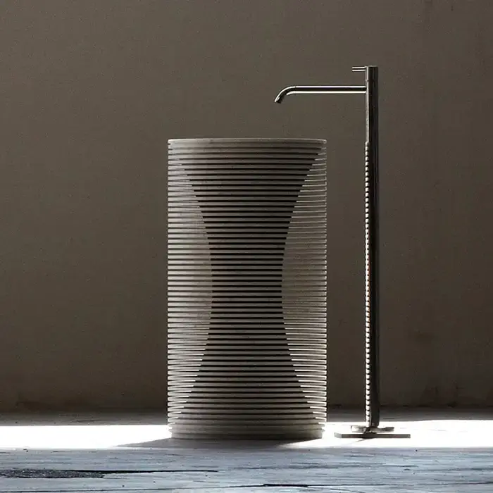 ANTONIO LUPI INTROVERSO Раковина напольная Ø450х850 мм., слив в пол, с самотёчным донным клапаном, сифоном и гибким шлангом, Marmo Carrara