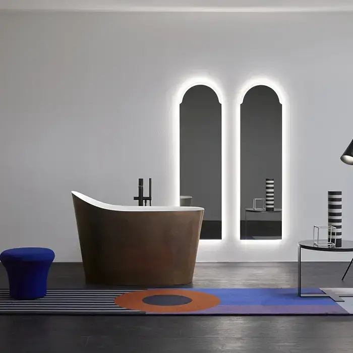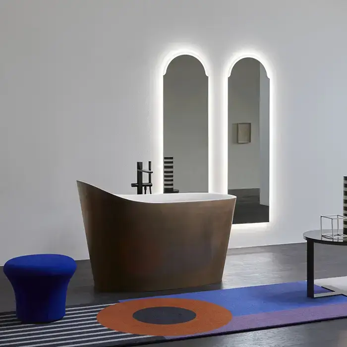 Antonio Lupi Mastello Ванна отдельностоящая 135х75х87см, с нажимным донным клапаном, сифоном и гибким шлангом, Flumood, цвет: Rame
