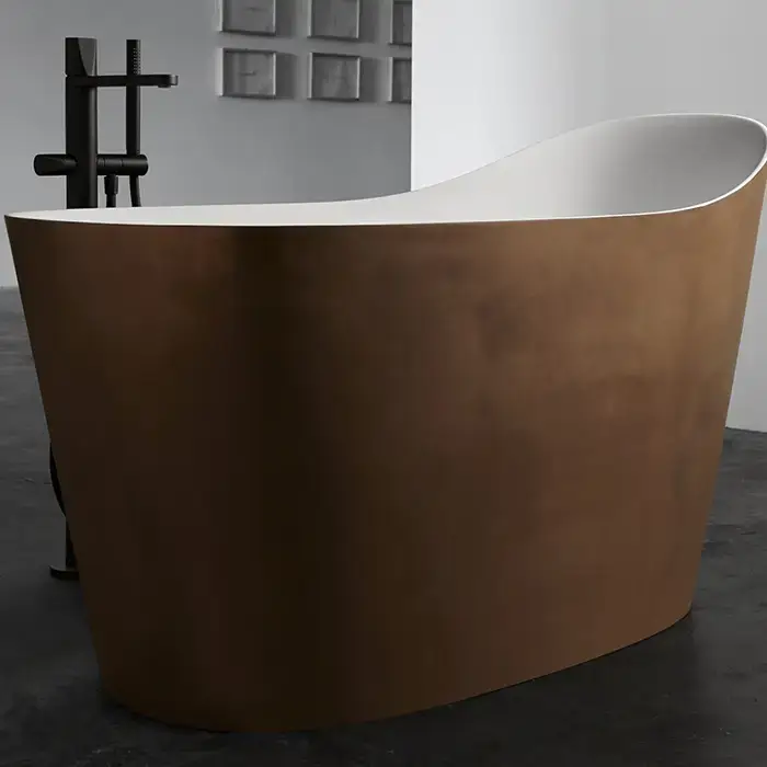 ANTONIO LUPI MASTELLO Ванна отдельностоящая 1350х750х870 мм, с нажимным донным клапаном, сифоном и гибким шлангом, Flumood, внешняя отделка Rame