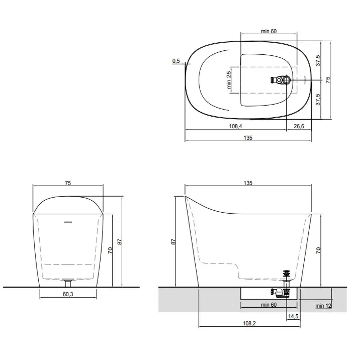 Antonio Lupi Mastello Ванна отдельностоящая 135х75хh87 см, с донным клапаном (хром), сифоном и гибким шлангом, материал: Flumood, цвет: белый
