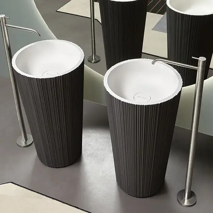 Oasis Plisse Раковина напольная Ø44х95см, без отв., без перелива, в комплекте с донным клапаном, цвет: черный/хром