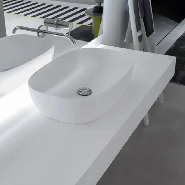 ANTONIO LUPI SENSO Раковина 600х400х150 мм., для установки на столешницу, с самотечным донным клапаном, Flumood, цвет белый матовый