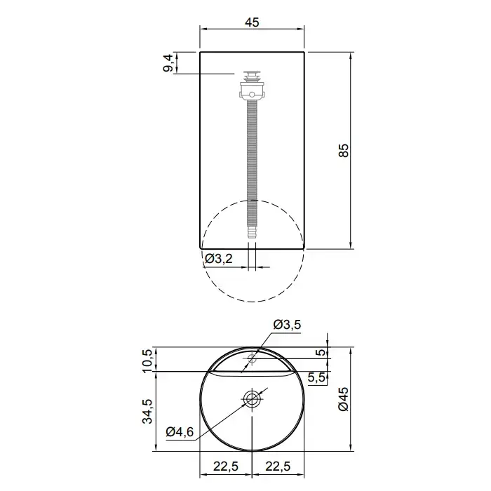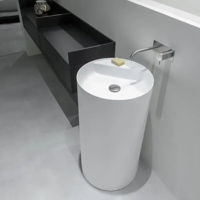 ANTONIO LUPI SIMPLO Раковина Ø450х850 мм., напольная, слив в пол, без отв. под смеситель, с нажимным донным клапаном и сифоном, Flumood, цвет белый