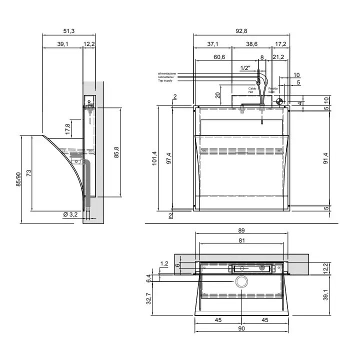 ANTONIO LUPI STRAPPOXL Раковина встраиваемая в стену 928х1014х513 мм., с смесителем, донным клапаном, сифоном и трансформатором, Corian, цвет белый