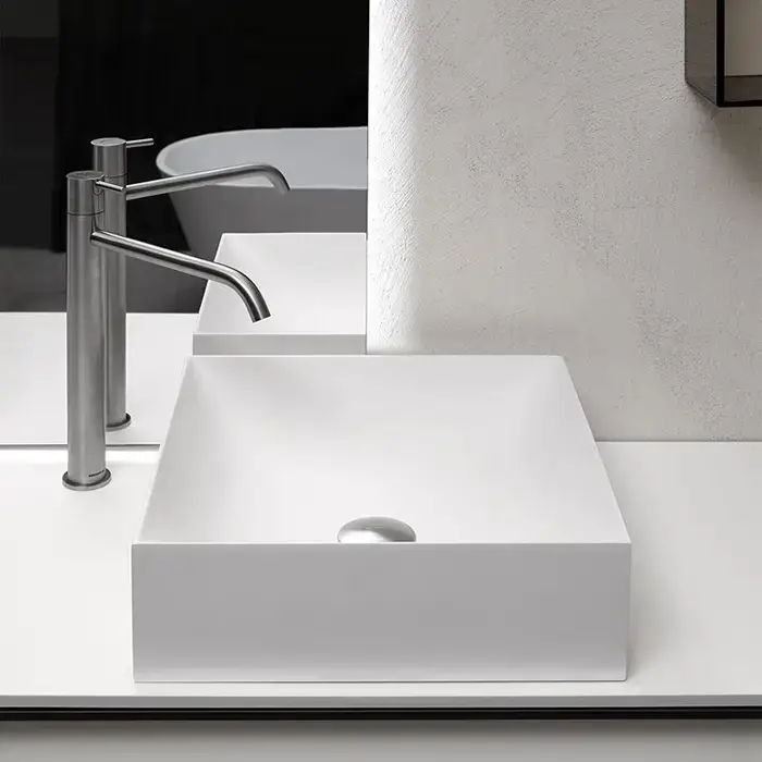 Antonio Lupi Stratos Раковина накладная (тип A) квадратная, 40х40см, без отв под смес, без перелива, с д/клапаном (хром), мат-л: Flumood, цвет: белый