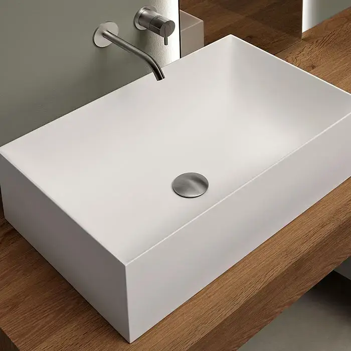 Antonio Lupi Stratos Раковина накладная (тип A) прямоугольная, 40х63см, без перелива, с д/клапаном (хром), мат-л: Flumood, цвет: белый