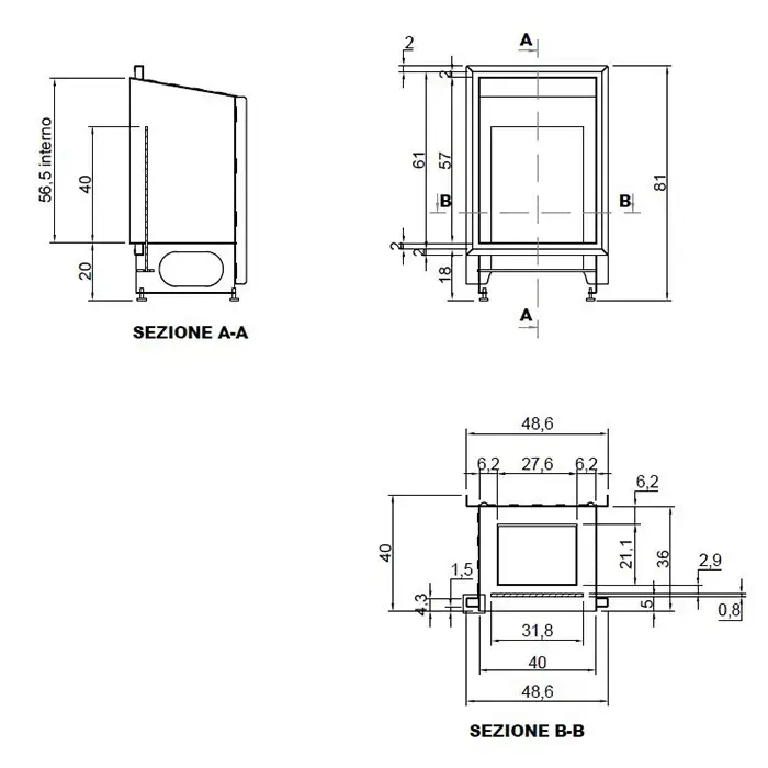 Antonio Lupi Teka Камин 48.6х40х81см, встраиваемый в стену, на биоэт, корп из стали, с противопожарн стеклом и горелкой LAFLACA, покрыт черной краской