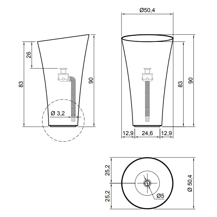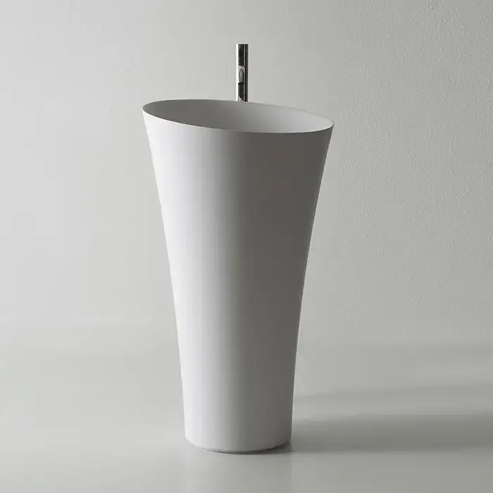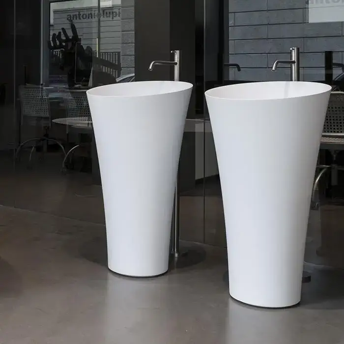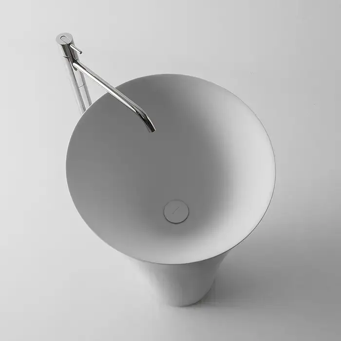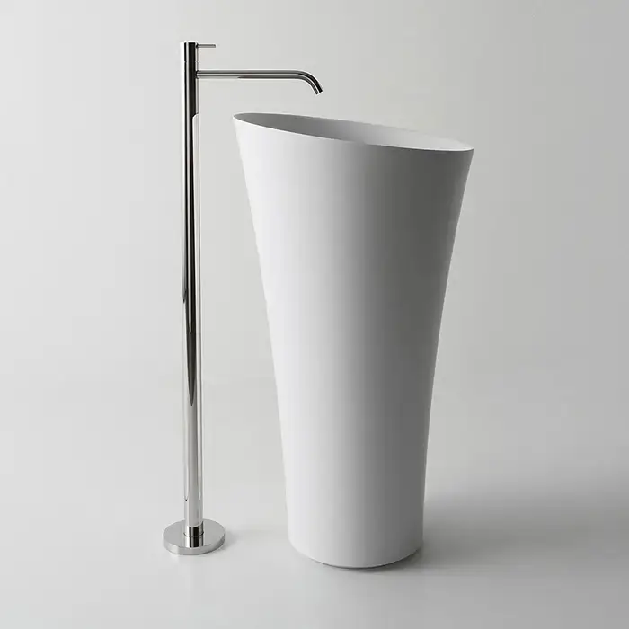Antonio Lupi Tuba Напольная раковина 50.4х50.4см, без отв, без перелива, с д/клапаном (хром), сифоном, слив в пол, мат-л: Flumood, цвет: белый