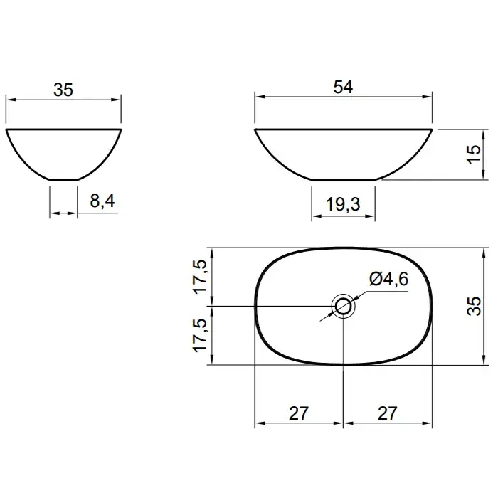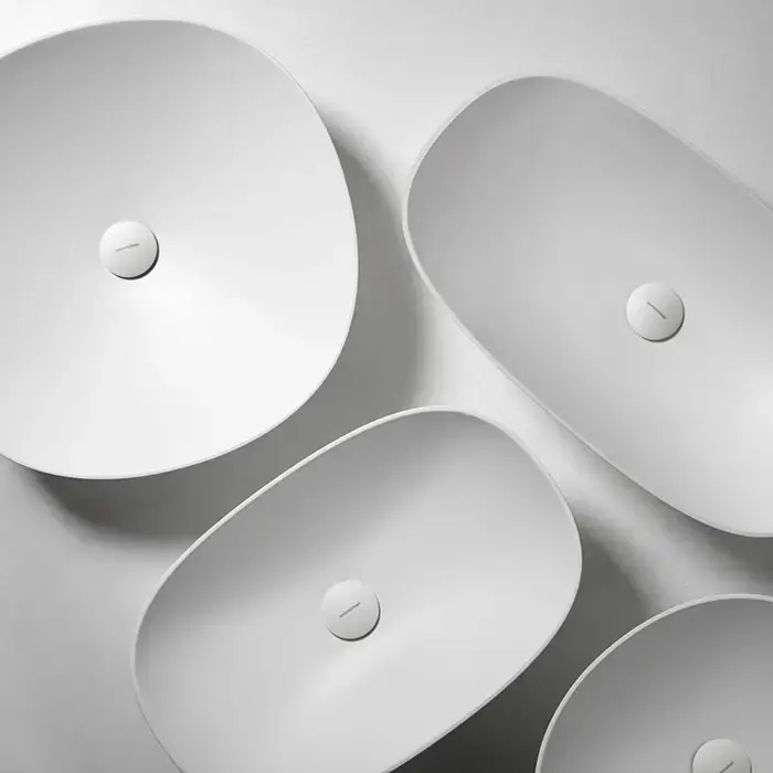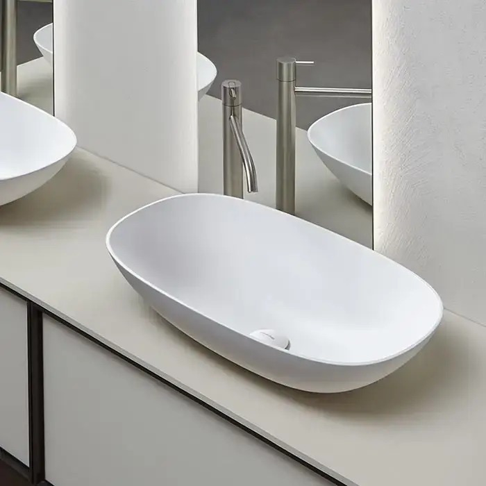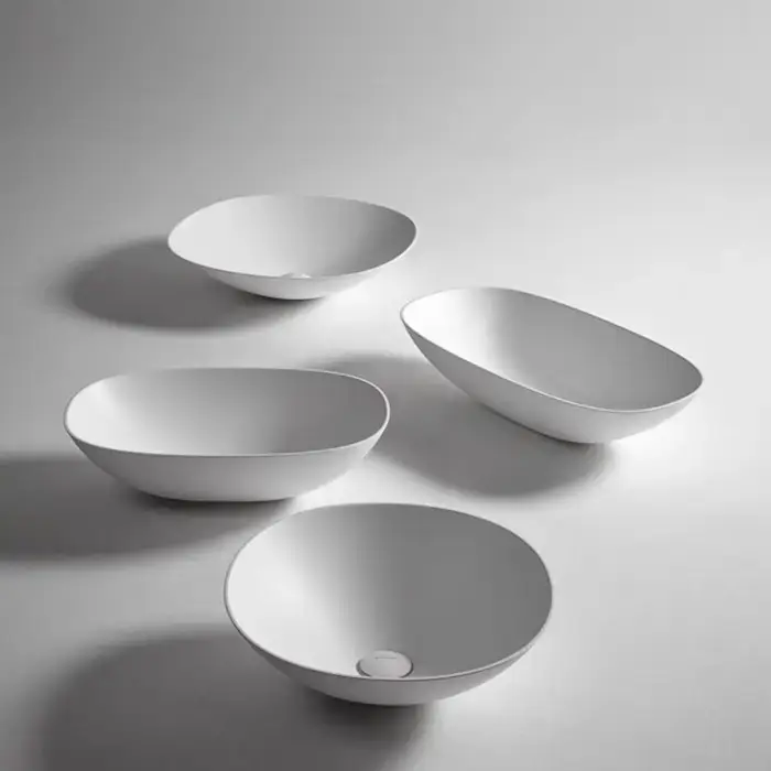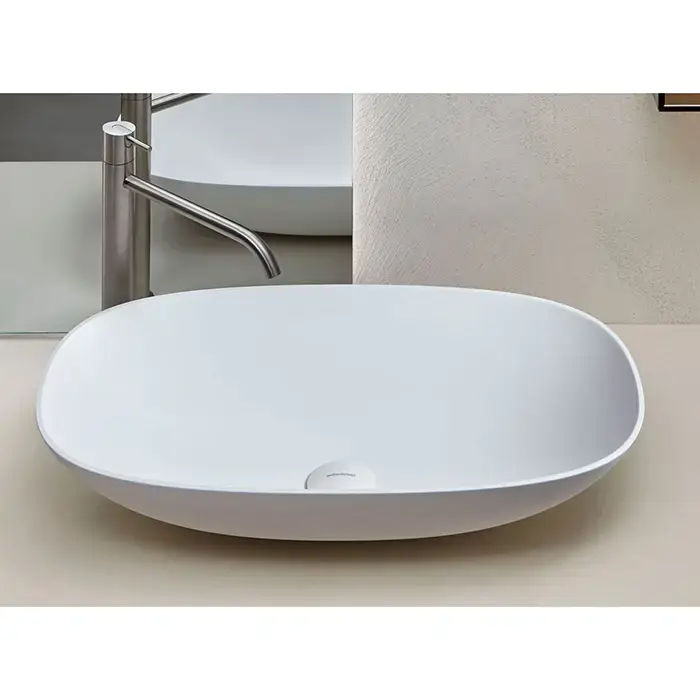 Antonio Lupi Velo Раковина накладная 35х54см, без отв под смес, без перелива, с д/клапаном (хром), мат-л: Flumood, цвет: белый
