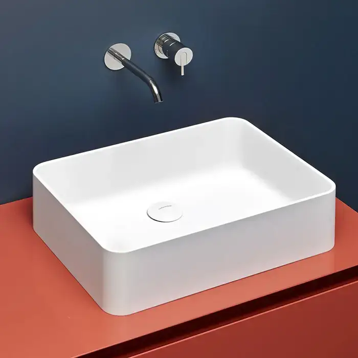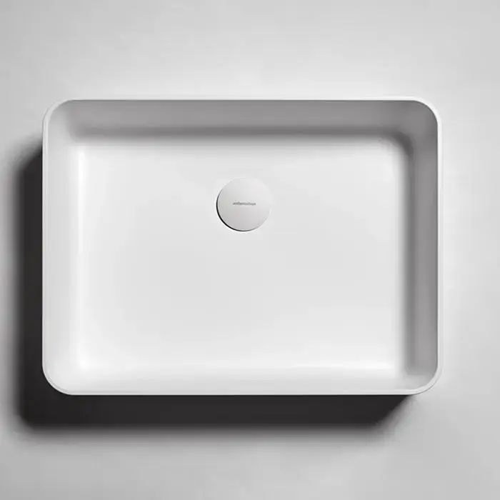 Antonio Lupi Velo Раковина накладная 38х50см, без отв под смес, без перелива, с д/клапаном (хром), мат-л: Flumood, цвет: белый