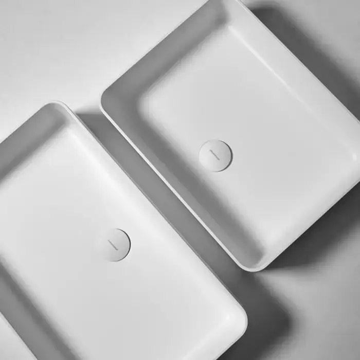 Antonio Lupi Velo Раковина накладная 38х63см, без отв под смес, без перелива, с д/клапаном (хром), мат-л: Flumood, цвет: белый