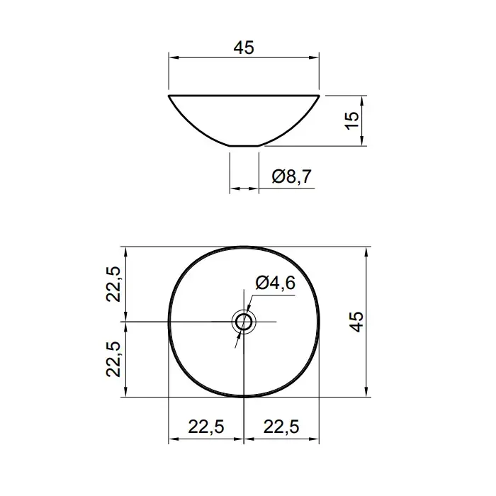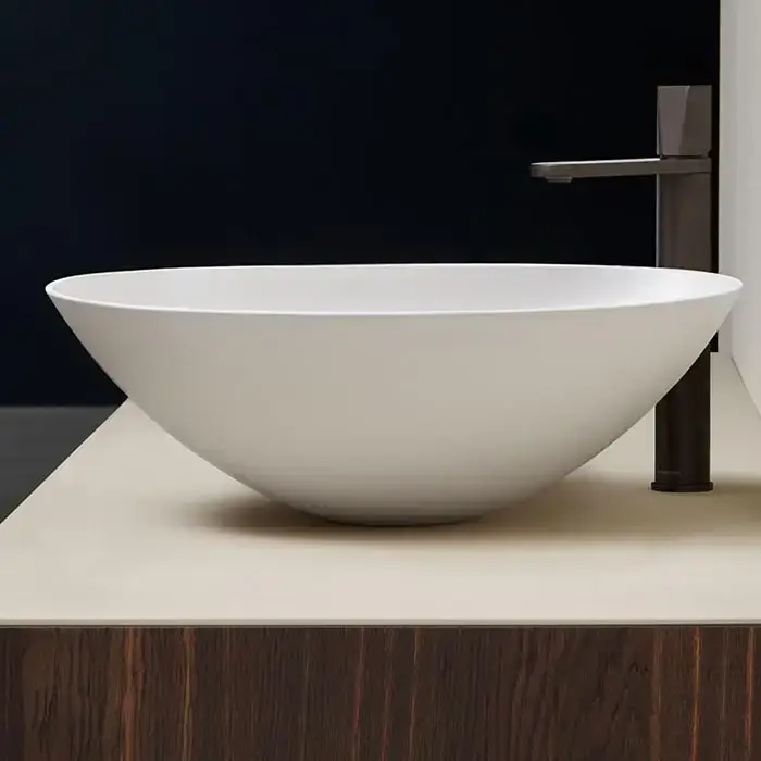 Antonio Lupi Velo Раковина накладная 45х45см, без отв под смес, без перелива, с д/клапаном (хром), мат-л: Flumood, цвет: белый