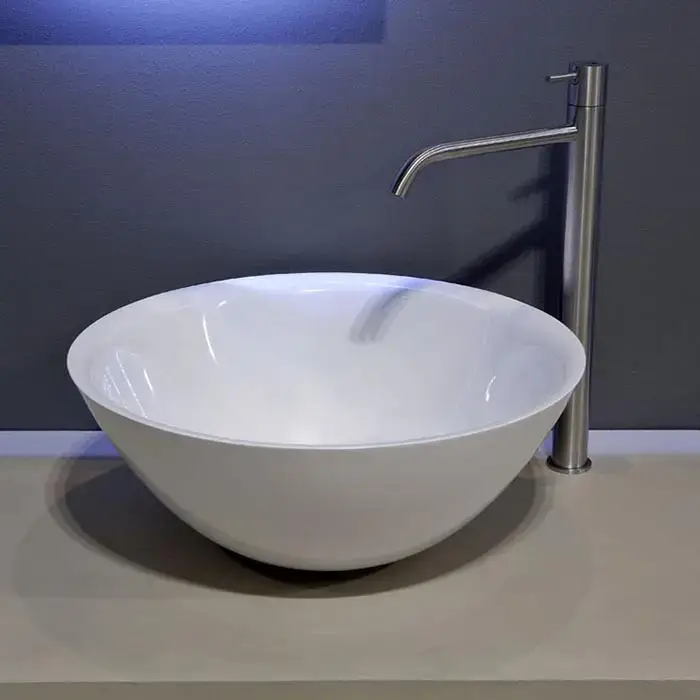Antonio Lupi Velo Раковина накладная 54х54см, без отв под смес, без перелива, с д/клапаном (хром), мат-л: Flumood, цвет: белый