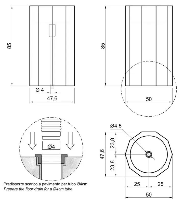 ANTONIO LUPI VITREO Раковина напольная Ø500х890 мм, слив в пол, с самотечн дон клап, сифон и трубой для слива, Cristalmood, основан прозр, цвет Nebbia