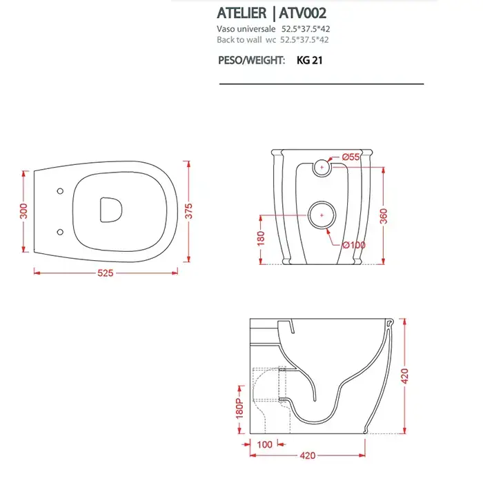 Artceram Atelier Унитаз напольный, 52х37хh42см, безободковый, слив универсальный, с крепежом, цвет: белый