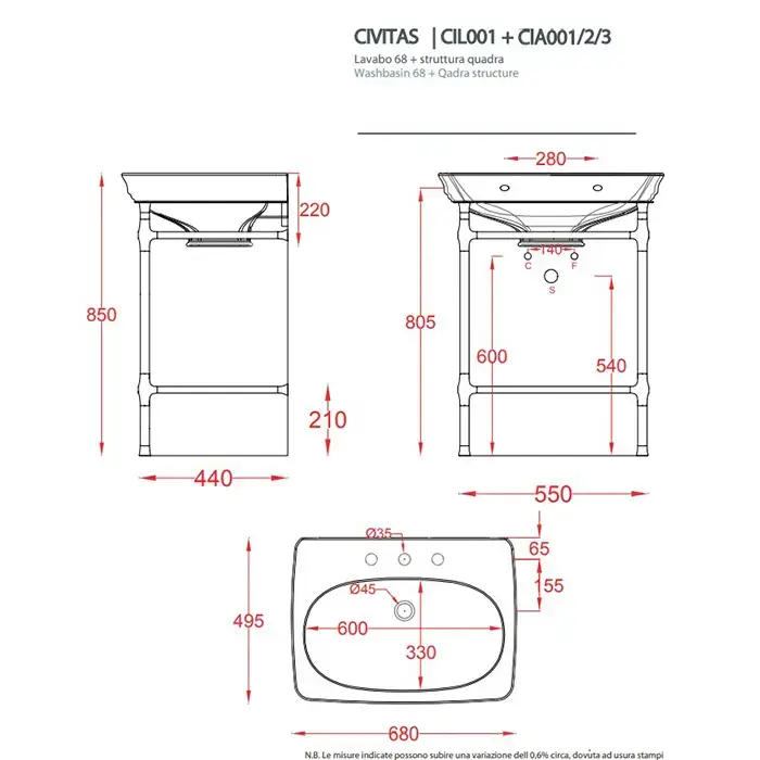 Artceram CIVITAS Металическая структура Quadra 55х44хh80,5см для раковины 68, цвет: розовое золото