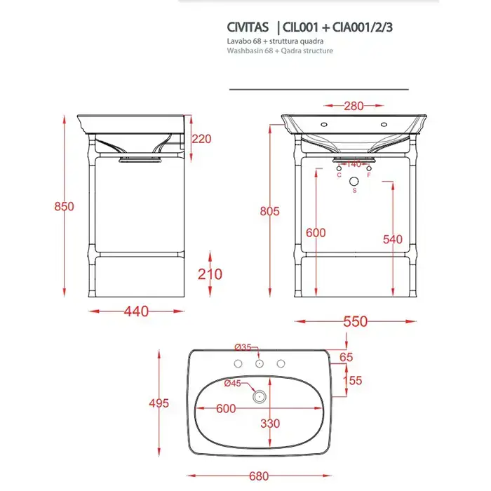 Artceram CIVITAS Металическая структура Quadra 55х44хh80,5см для раковины 68, полка сетка, цвет: розовое золото