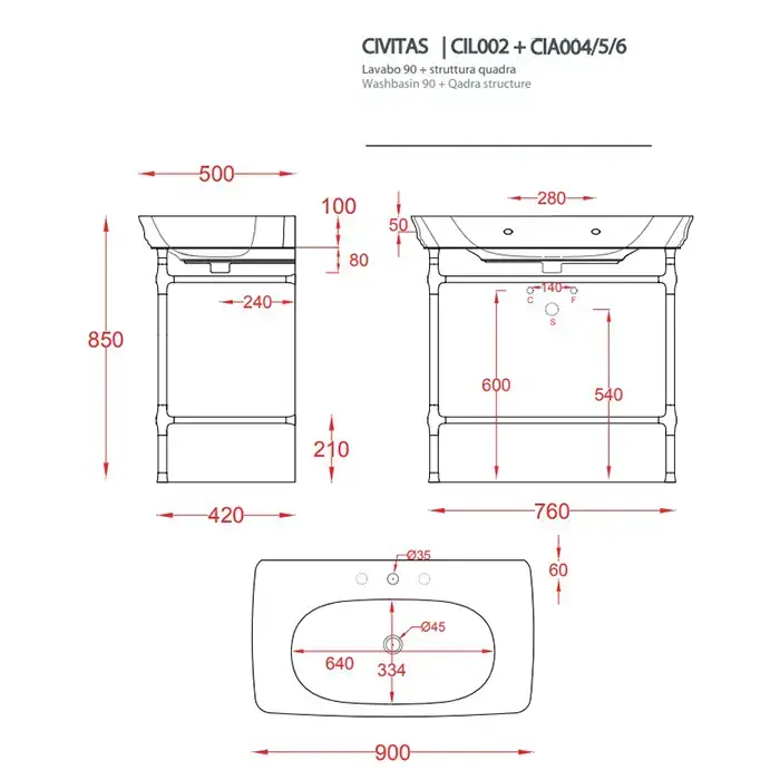 Artceram CIVITAS Металическая структура Quadra 76х44хh80,5см для раковины 90, полка сетка, цвет: розовое золото