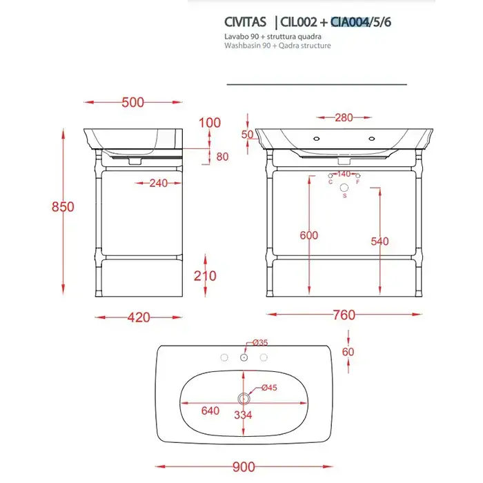 Artceram CIVITAS Структура металлическая Quadra для раковины 90см, цвет хром