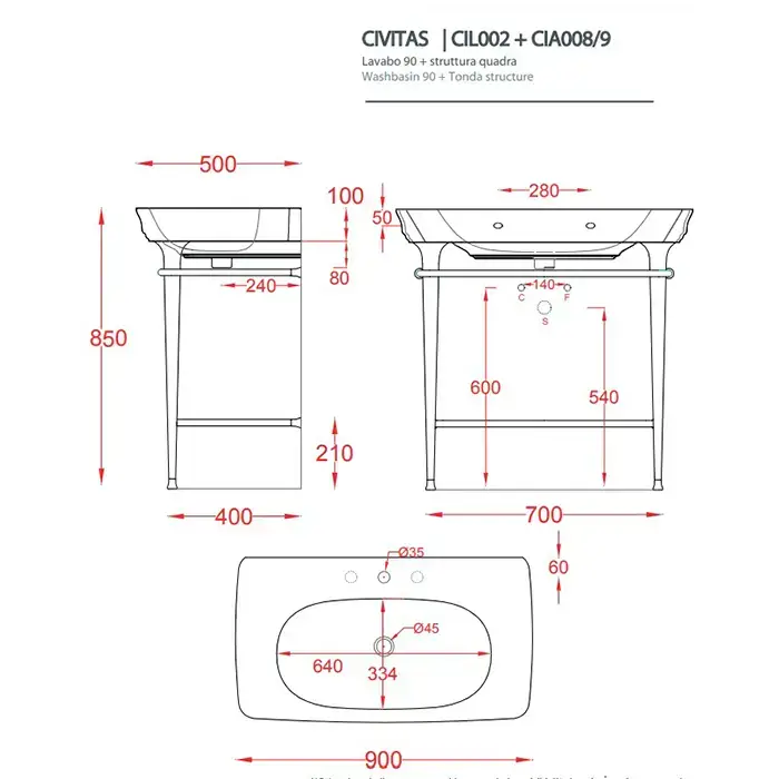 Artceram CIVITAS Структура металлическая Tonda для раковины 90см, полка стекло, цвет золото