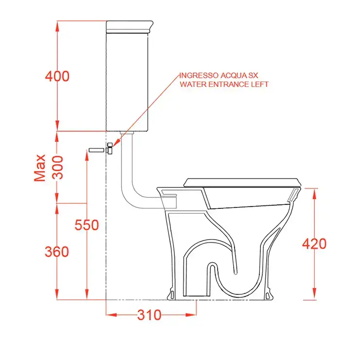 Artceram CIVITAS Унитаз 36х54см., со средним бачком и трубой хром, с механизмом с фронтальной ручкой, с сиденьем, микролифт, цвет: белый/хром