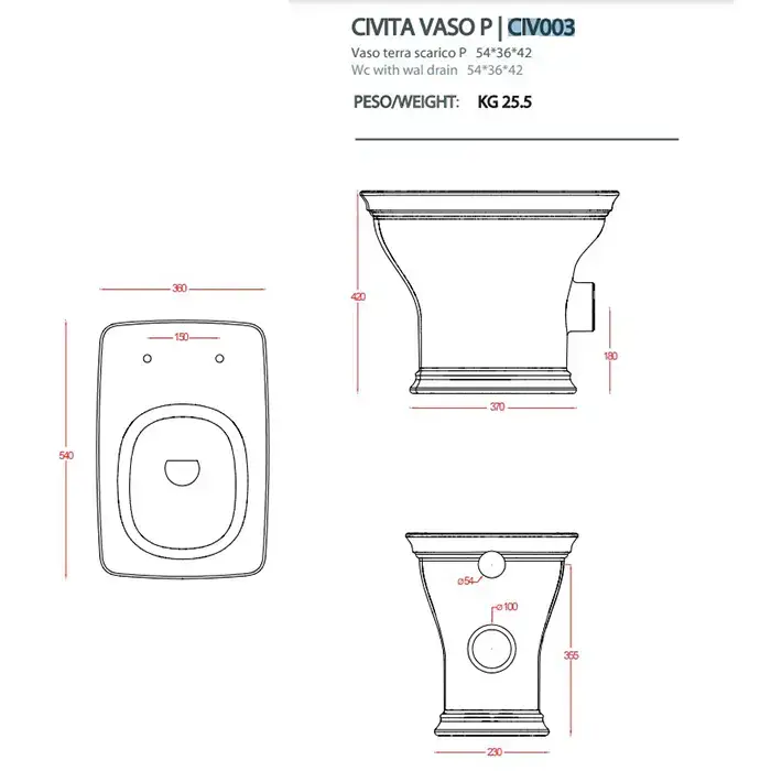 Artceram CIVITAS Унитаз напольный 36х54 см, слив в стену, цвет белый (крепится на силикон)