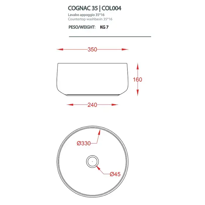 ArtCeram COGNAC Раковина накладная , 35 см, без отв под смеситель, без слив-перелива, цвет черный матовый
