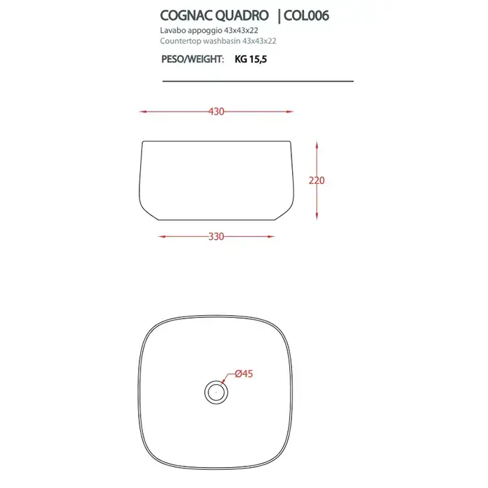Artceram Cognac Раковина 43x43 см, без отв., накладная, цвет: матовый белый